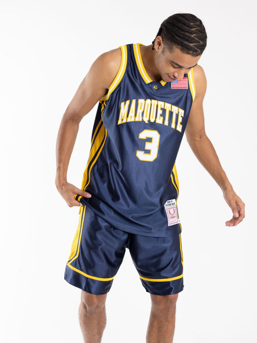 Essential for the NBA supporter or die-hard fan, the NCAA Collegiate Vault Authentic jersey is a premium construction piece made to evoke what the legends wore on the court. Featuring high quality stitched name & numbers and a breathable mesh body, this Authentic Jersey is perfect for game day, casual or weekend wear. "The Marquette Golden Eagles men's basketball team (formerly the Marquette Hilltoppers and Marquette Warriors) represents Marquette University in NCAA Division I college basketball and compete in the Big East Conference. Marquette has made 34 NCAA tournament appearances, including 16 Sweet Sixteens, 7 Elite Eights, and 3 Final Fours. They were the national runner-up 1 time and have won 1 National Championship. Marquette first joined a conference in 1989, winning 4 conference regular season championships and 1 conference tournament championship. Additionally, 39 Marquette players have gone on to play in the NBA combining for 7 NBA championships, 25 NBA all-star selections, and 11 all-NBA selections."