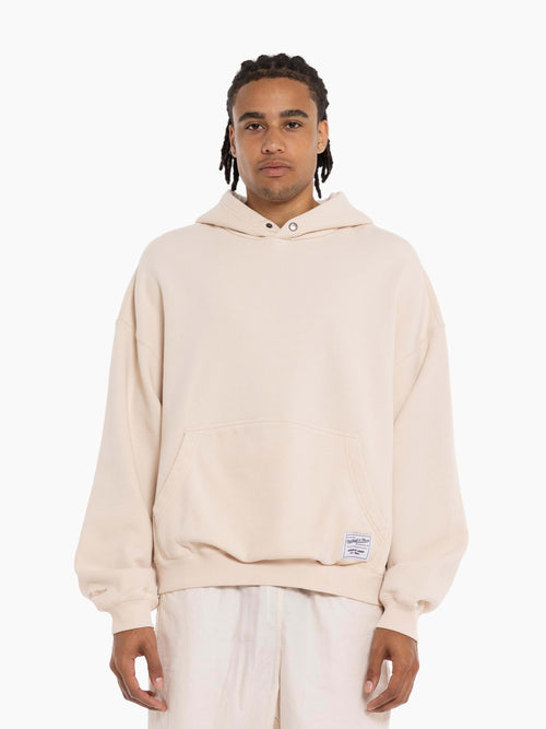 Introducing our exclusive Authentic Goods hoodie crafted from heavyweight cotton/poly fleece for warmth and durability, featuring a fresh boxy fit for contemporary style. Elevate your streetwear look with ease. Comfort and trend collide in every detail. Authentic Goods. Our latest capsule blends elevated textures, neutral tones, and tailored silhouettes to create a timeless range of pieces with unmatched fit and feel. The sport-inspired collection channels enduring garment construction techniques 'from then' to create heavyweight streetwear styles 'for now.'