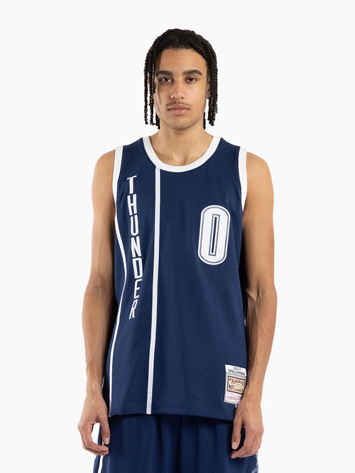 Honour the greats of the game with a Swingman Jersey. Featuring printed twill name & numbers and breathable side-panel inserts, the Swingman Jersey is a versatile piece that is essential for any basketball fan. The Oklahoma City Thunder was originally established as the Seattle SuperSonics, an expansion team that joined the NBA for the 1967-1968 season. When the Seattle SuperSonics relocated to Oklahoma City after the 2007-2008 season, fans voted on potential nicknames and Thunder was the winning pick. The team set sales records for the first day after the nickname was revealed.